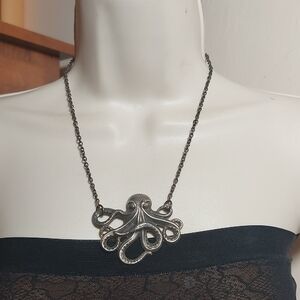 Vintage Repousse Octopus Pendant Silver Tone Statement Necklace