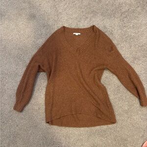 Chic brown V-neck sweater. Ideal for layering and casual wear. Oversized.
