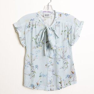 Scotch & Soda Floral Blouse Button Up Shirt Neck Scarf Short Sleeve