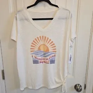 NWT super soft jessica simpson tee with sun and waves graphic and rolled knot on one side