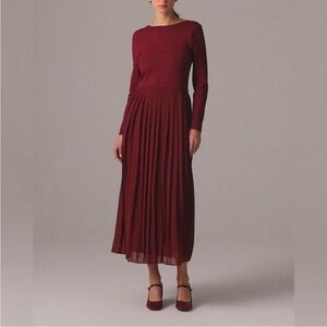 J.Crew Pleated Ballet Dress Burgundy Stretch Cotton Blend Modest Elegant NEW