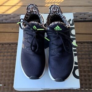 Adidas Cloudfoam Pure SPW Black and Neon Green Sneakers Size 6.5. Adidas sneakers in black with neon green details. Leopard print interior adds flair. Good used condition