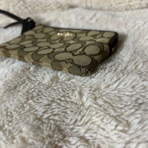 Elegant Coach wristlet with iconic pattern. Includes a convenient wrist strap.