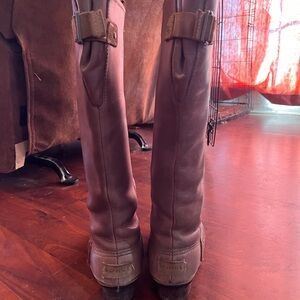 Sorel Dark Brown with Gray Leather Slimpack Tall Boots