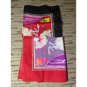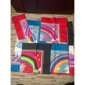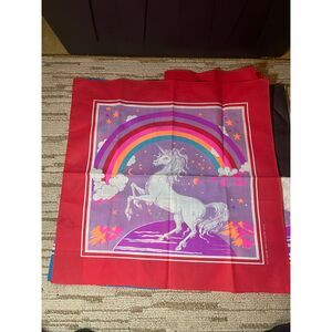 Vintage 80’s Unicorn handkerchief Bandana Stars Rainbow Scarf Mask Curtain USA l