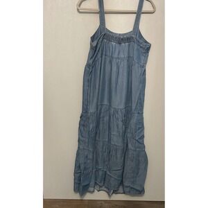 The Drop Chambray Tiered Maxi Dress L NWT Light Denim Blue