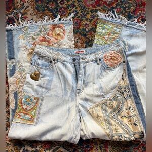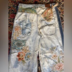Johnny Was patchwork silk floral Wide Leg Jeans Size 32