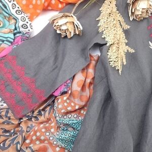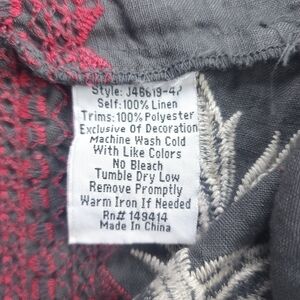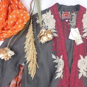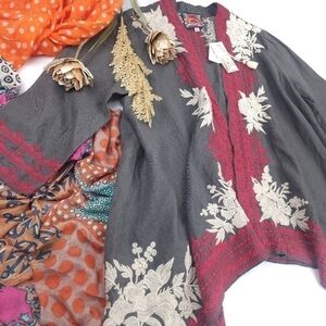 New Johnny Was Charcoal Camille Draped Embroidered Cream Red Cardigan Sz…
