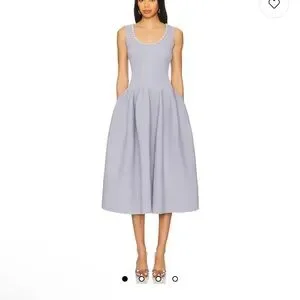 Revolve Self-Portrait Diamanté ribbed knit midi blue dress XS