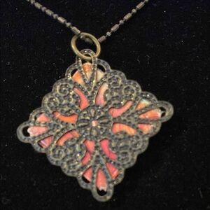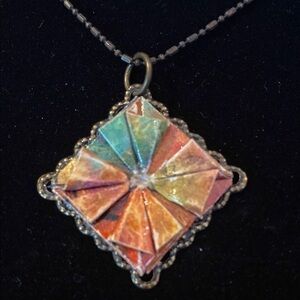 This stunning necklace features a multicolor pendant that adds a vibrant touch to any outfit. Perfect for any occasion.