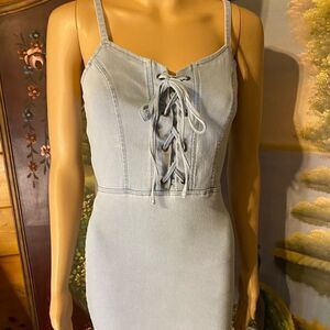 Baby Blue Denim Bodycon Mini Spaghetti Strap w/Top Laced Up Small
