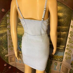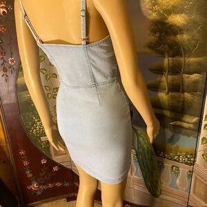NWOT baby blue stretch denim spaghetti strap mini dress