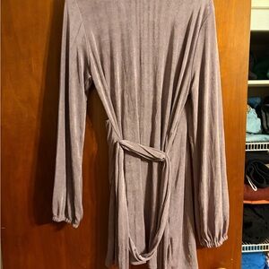 Elegant lavender wrap dress with soft fabric. Perfect for any occasion.