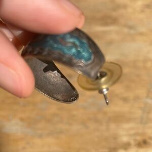 Vintage Mexican Sterling Silver Earrings – Blue Enamel Inlay, MEX Mark