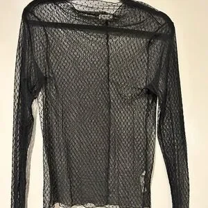 Black lace sheer long sleeve top from Free People. Stretchy.