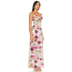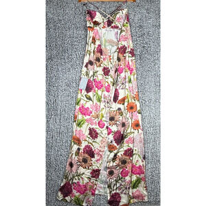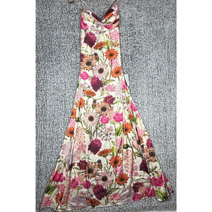 Katie Mae Tara Dress XL Pink Daisy Floral Print Maxi Dress Satin Gown MSRP $298