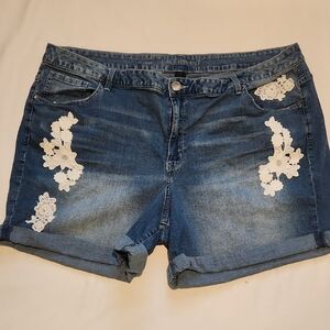 Lane Bryant Blue Jean Shorts with White Lace Sz 28