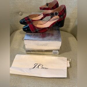 J.Crew Millie Deep Ruby Plaid Patent Toe Ankle Strap Block Heels Pumps Size 6.5