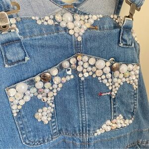 Carhartt overalls, they have been bedazzled. Some of the jewels have come off but could add more or leave as is. Otherwise in good preloved condition. Size is a ladies 8/10 (medium). Likely vintage, style is WR008 FBI