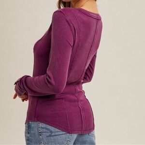 Elevate your wardrobe with this stylish purple long sleeve top. Perfect for any occasion, it offers both comfort and elegance.