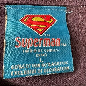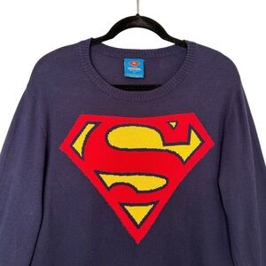 Superman Knit Sweater | DC Comics Logo Pullover | Navy Blue Graphic Sweater L