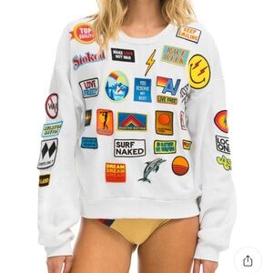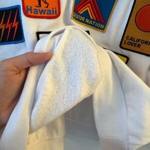 Vibrant crewneck with assorted colorful patches. Perfect for a standout casual look. Excellent condition! Only worn once and so soft!