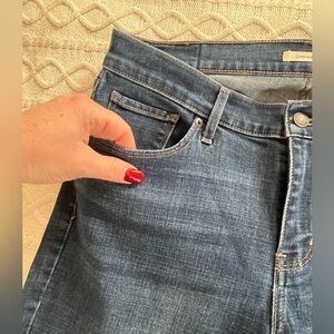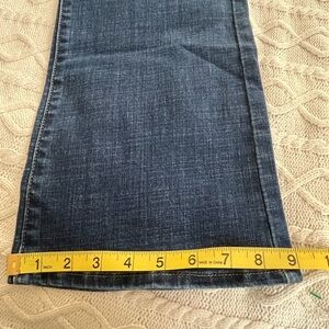 EUC excellent condition & quality! Elevate your wardrobe with these classic darker blue hue women's distressed jeans. Perfect for any occasion, these jeans offer both style and comfort. Curvy bootcut. Cotton, polyester and elastane blend. Measurements in photos. Smoke free home. Women’s size 32/30.