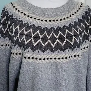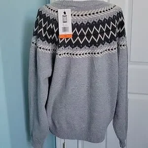 New sweater, grey w/ creme & dark grey accents. Soft poly/acrylic.