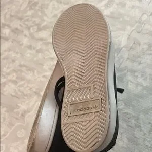 Sleek black Adidas sneakers with white soles. Ideal for everyday style.