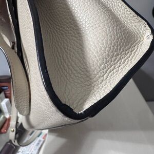 This elegant cream handbag features a sophisticated design with a stylish gold accent. Perfect for any occasion, it combines fashion and functionality seamlessly.