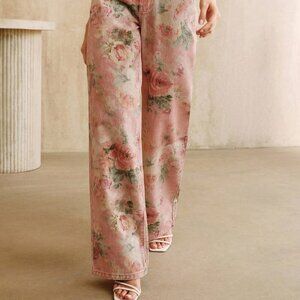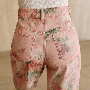 Elevate your everyday style with these pink casual women's jeans, featuring a vibrant plant print. With a regular fit and long straight leg design, they offer a comfortable and versatile option for any occasion.