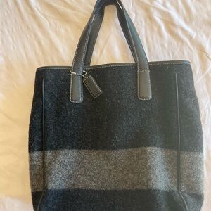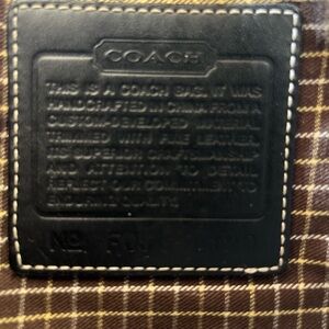 Elegant black leather 2 tone bag with Coach branding. Ideal for adding a touch of luxury.