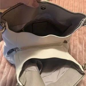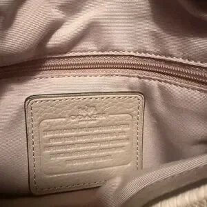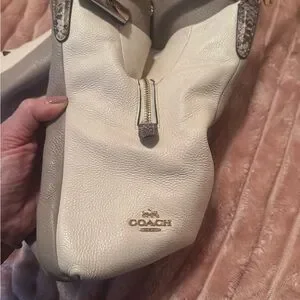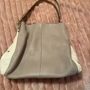 Chic Coach shoulder bag in gray and cream. Perfect for everyday use. Stylish and versatile.3 zipper pockets animal print straps. Very versatile and stylish.