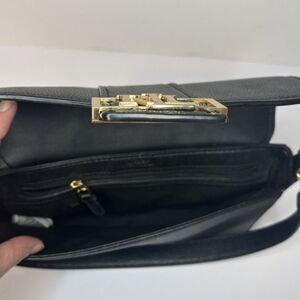 Lauren Ralph Lauren Spencer Black Pebbled Leather Shoulder Bag Gold Hardware
