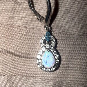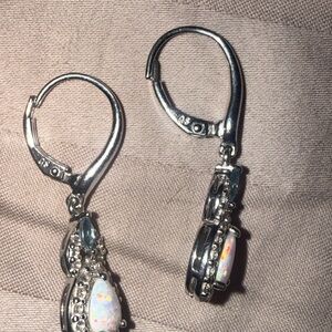 These elegant silver earrings feature stunning blue opal stones, perfect for adding a touch of sophistication to any outfit.