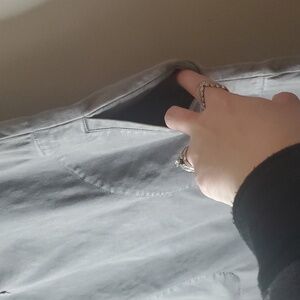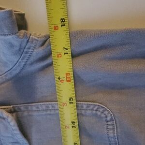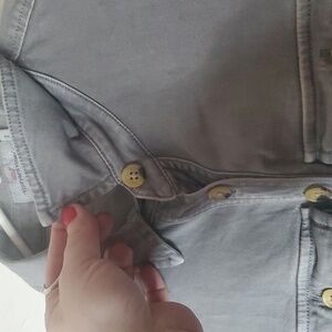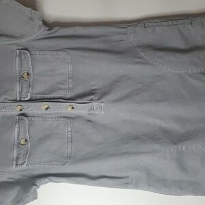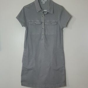 Everyday casual dress size 2. Side pockets and chest pockets. Button closure. Structure with stretch. Good pre-owned condition. Approximate measurements provided. There is a spot with puckering but I'm not sure if that will go away with a steam or not. Please refer to photo's for reference. Minimalist. Contemporary. Business Casual. Office. Preppy. Feminine. Resortwear. Travel. Vacation. Spring. Summer.