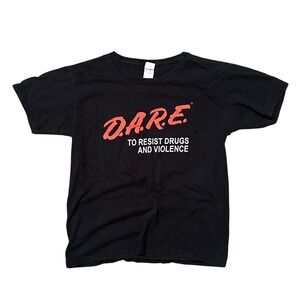 DARE To Resist Drugs And Violence Black T Shirt Kids Size L Youth Graphic Tee