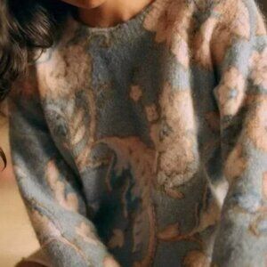 Sezane Helene Jumper - Blue and Cream Floral Sweater - XXS - Excellent Condition