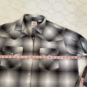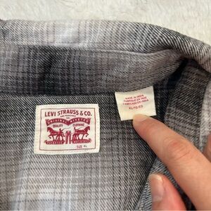 Levi Strauss - Western Style Gray Plaid Long Sleeved Button Up Flannel Shirt