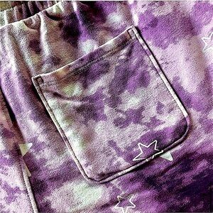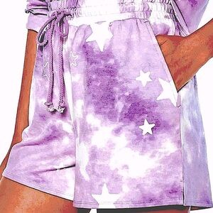 Features Tie Dye Pattern in White and Purple with Stars. This listing is for the SHORTS ONLY. The MATCHING SWEATSHIRT is LISTED in MY CLOSET!