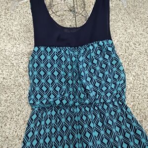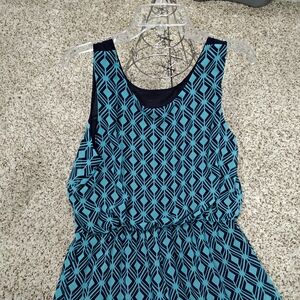 Chic dress with teal and black design. Ideal for any occasion. pop 22" length 53" . Lined.