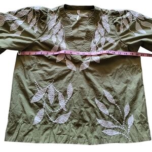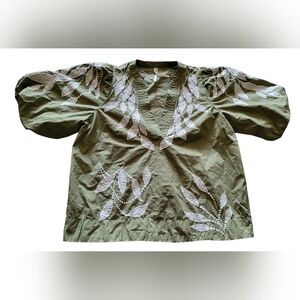 Pre-owned Anthropologie Puff-Sleeve Embroidered Blouse Top Women Sz M Green