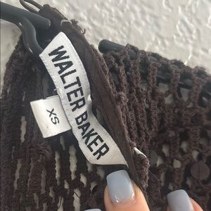 This Walter Baker dress showcases a chic ribbed design in a rich brown hue, perfect for cocktail events or a night out. Featuring a sheath silhouette with long sleeves and a crew neck, it offers a sophisticated and form-fitting look. The dress's elegant style is ideal for making a statement at any evening occasion.