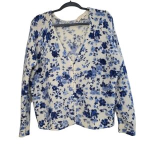 La Maille Sezane Lisette Cardigan wool Kid Mohair Blue Floral.