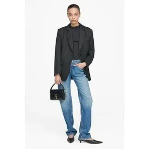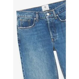 Introducing the Knox Jean in Mineral Blue by Anine Bing. These straight-leg jeans offer a timeless fit, perfect for elevating any casual look. Crafted from high-quality denim, the medium wash and subtle whiskering give a classic and relaxed vibe. The design ensures comfort while maintaining a polished appearance, making them suitable for versatile styling options. Great for everyday wear, these jeans effortlessly combine comfort and sophisticated style.