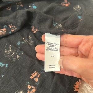 NWT Lucky Brand - 3/4 Sleeve Floral Tee Black Multicolor 1X/1G