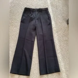 Elegant wide leg pants. Classic black color. Perfect for any occasion. Sleek black wide leg trouser. Ideal for formal events. Blake cut, mid-rise, straight through the hip and thigh, wide leg. 30 inseam, rise 11 inches, waist 16 inches. Beautiful drapery, hangs well, slightly heavy so good for fall, winter, and early spring, these are gorgeous,I have three pairs so this goes to a lucky buyer. Thanks for looking.