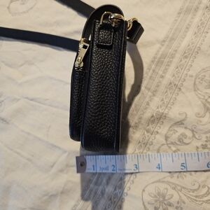 Like new, real blacl pebble leather, crossbody phone case. Zip pocket on front, leather snap safety strap to hold phone in place, and adjustable strap. Made for iphones, but I have an Android and it fit my Samsung Ultra which is pretty large. Measurements in photos.