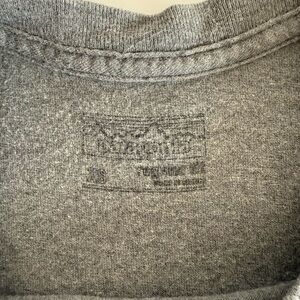 This Patagonia short sleeve tee in a solid gray color offers a timeless crew neck design, perfect for everyday wear. Made from a soft 100% cotton, it ensures comfort and durability. The subtle branding on the chest adds a touch of style to this versatile piece. Some holes in bottom right side seem. Shown in photos. Slight cracking in the back screen print graphic. Mens size XS. Color: Grey. Measurements laying flat:
