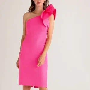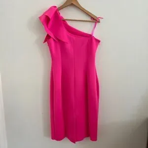 Eliza J. One-Shoulder Scuba Crepe Cocktail Dress in Hot Pink